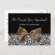 Machen Sie ein Modestatement mit dieser trendigen Schwarz-Weiß-Leopardendrucksalon Termin Erinnerung Postkarte mit einem gürtelbraunen Band aus Karaffe, das in einen schicken Bogen gebunden ist. Personalisieren Sie diese stilvolle Termin-Erinnerung, indem Sie Ihren Firmennamen und Ihre Kontaktinformationen zu den individuell anpassbaren Vorlagenbereichen hinzufügen. Dies ist Teil der Animal Print Fall Fashion Collection. Flachbild, nicht echtes Band.