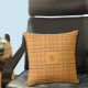Ein braunes und ockerfarbenes Tartan-Muster wirft Kissen mit dem Monogramm Ihrer Familie. © ArianeC Illustrations-Alle Rechte vorbehalten