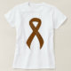 Braunes Band mit "Support Awareness". Die braune Schleife wird mit Colon Cancer Awareness Month (Braun ist die wechselnde Farbe, dunkelblau die offizielle Farbbandfarbe), Kolorektal Cancer Awareness Month, Familial Polyposis Awareness Month in März und Anti-Tobacco Awareness Month und Tobacco Awareness Month im November assoziiert.