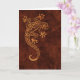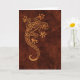 Dieses Tribal-Gecko-Design ist mit komplizierten Linien und Wirbel dekoriert. Die Eidechsenfüße sind in alle Richtungen verteilt, sodass es so aussieht, als ob sie auf der Oberfläche des Musters klettern. Es ist Schwanz, der unter dem Körper hängt, während der Kopf in einer merkwürdigen Pose leicht in Richtung Betrachter gedreht wird. Rasse Texturen und natürliche Brauntöne verleihen dem Muster das Aussehen, aus Stein geschnitzt zu werden. Dieses schöne Design ist eine stilvolle Darstellung dieser niedlichen kleinen Eidechse.