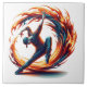 Dieses dynamische Kunstwerk erfasst einen Breakdancer in der Mitte, umgeben von wirbelnden Flammen in einer lebhaften Explosion von Energie und Farbe. Ideal für Liebhaber von angesagt-hop, Straßenkultur und kühnem urbanen Stil - dieses Stück strahlt Bewegung, Power und Feuer aus.