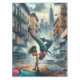 Das Design zeigt eine lebendige Szene, in der eine Break-Tänzerin-Frau in vollem Schwung auf der Straße auftritt. Der Hauptcharakter, der Break Tänzer, befindet sich inmitten eines mächtigen Handstands.