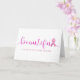 Glückwunsch jemand in ihrem Sieg über Brustkrebs mit diesem Kalligraphie-Stil Typografie-Design, das ein rosa Brustkrebs-Bewusstseinsband als "L" im Wort "Schöne" enthält. Subhead sagt: "Es ist, wer du bist. Das hast du getan." Inside hat diese Nachricht, kann aber an Ihre Bedürfnisse angepasst werden: COURAGE. BRAUCH. ENTSCHLOSSENHEIT. PERSEVERANTWORTUNG. GLAUBEN. Dein Sieg ist schön. DU bist schön. Herzlichen Glückwunsch, dass Sie krebsfrei sind!