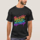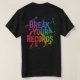 Dieser motivierend T - Shirt enthält den Text "Break Your Platten" in einem lebendigen Schatten von Regenbogenfarben. Das Design hat ein beängstigendes, Vintages Ambiente, ideal für diejenigen, die ein klassisches Aussehen mit einem Pop von Farbe Liebe.