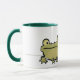 Sie mögen grünen Tee? Selbst wenn nicht, werden Sie Liebe der grüne breit-mouthed Cartoonfrosch auf dieser Tasse. Drehen Sie sie herum, um zu sehen, was er aufpasst…