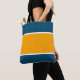 Dieses sportliche Design besticht durch einen hellen, goldgelben, breiten Mittelstreifen, der mit schlanken, weißen Streifen in einem eleganten, dunklen, aquamarinen Hintergrund hervorgehoben wurde.