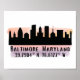 Wall print zeigt Baltimore Maryland City Skyline Silhouette mit Aquarellprägung und Koordinaten der Längen- und Breitengradkarte