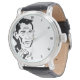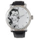 Uhr, Klassische Damenuhr mit schwarzen Lederarmband