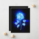 Blühende, abstrakte Rose aus blauer Flamme auf schwarzem Hintergrund. Rose.