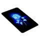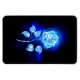 Blühende, abstrakte Rose aus blauer Flamme auf schwarzem Hintergrund. Rose.