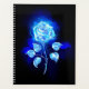 Blühende, abstrakte Rose aus blauer Flamme auf schwarzem Hintergrund. Rose.