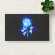 Blühende, abstrakte Rose aus blauer Flamme auf schwarzem Hintergrund. Rose.