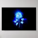 Blühende, abstrakte Rose aus blauer Flamme auf schwarzem Hintergrund. Rose.