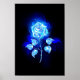 Blühende, abstrakte Rose aus blauer Flamme auf schwarzem Hintergrund. Rose.
