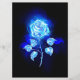 Blühende, abstrakte Rose aus blauer Flamme auf schwarzem Hintergrund. Rose.