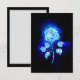 Blühende, abstrakte Rose aus blauer Flamme auf schwarzem Hintergrund. Rose.