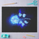 Blühende, abstrakte Rose aus blauer Flamme auf schwarzem Hintergrund. Rose.