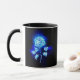Blühende, abstrakte Rose aus blauer Flamme auf schwarzem Hintergrund. Rose.