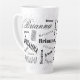 A crafted typography  Latte Mug  with the custom name "Brianna" in complimentary font styles over a background script. initials The black, white, and grey colors offer a timeless look, ensuring your drink remains yours because it has your name. It's OK to be possessive with your Lattes.