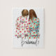 Kundenspezifischer Puzzlespielentwurf, der eine Braut und eine Brautjungfer in den Blumenroben kennzeichnet!