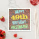 Dieses lustige Geburtstagsthema der Papierserviette enthält eine Nachricht wie "HAPPY 49. BIRTHDAY, FIRSTNAME!", in der der Name personalisiert werden kann. Im Hintergrund ist eine Ziegelwand aus rötlich-braunen Ziegeln dargestellt. Der anpassbare Text der Nachricht weist Farben wie Blau, Gelb und Grün auf und hat ein Aussehen, das von dem eines bemalten Graffiti inspiriert wird. Napkins wie diese könnten vielleicht auf einer Geburtstagsparty für jemanden verwendet werden, der seinen neunundvierzigsten Geburtstag feiert. [~Z0000271]