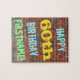 Dieses lustige, zum Geburtstag kommende Puzzle-Design enthält eine Nachricht wie "HAPPY 60 th BIRTHDAY, FIRSTNAME!", in der der Name personalisiert sein kann. Im Hintergrund ist eine Ziegelwand aus rötlich-braunen Ziegeln dargestellt. Der anpassbare Text der Nachricht weist Farben wie Blau, Gelb und Grün auf und hat ein Aussehen, das von dem eines bemalten Graffiti inspiriert wird. Ein Rätsel wie dieses könnte dazu benutzt werden, jemandem, der seinen sechzigsten Geburtstag feiert und der vielleicht wirklich gerne Rätsel macht, Geburtstagswünsche zu schicken. [~Z0000285]