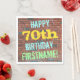 Dieses lustige Geburtstagsthema der Papierserviette enthält eine Nachricht wie "HAPPY 70 th BIRTHDAY, FIRSTNAME!", in der der Name personalisiert werden kann. Im Hintergrund ist eine Ziegelwand aus rötlich-braunen Ziegeln dargestellt. Der anpassbare Text der Nachricht weist Farben wie Blau, Gelb und Grün auf und hat ein Aussehen, das von dem eines bemalten Graffiti inspiriert wird. Napkins wie diese könnten vielleicht auf einer Geburtstagsparty für jemanden verwendet werden, der seinen siebzigsten Geburtstag feiert. [~Z0000271]