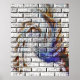 Ein digitales Kunstdesign von Graffiti auf einer weißen Ziegelwand.