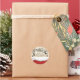 Auf diesen Aufklebern "aus der Küche der" oder auf den Etiketten "von selbst" für Weihnachtsgeschenke, Süßigkeiten und Leckereien. Sehr klassische Ziergegenstände, Schnee und Ziegelsteine.