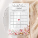 Machen Sie Ihrem Brautparty mit diesem blass-rosa Blumenspiel Bridal Bingo ein besonderes Vergnügen. Die Gäste können sich an Geschenken, die von der Braut geöffnet werden, erfreuen und die Feier mit Spannung beginnen.