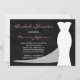 Diese wunderschöne Brautdusche mit weißem Brautkleid und einem halbtransparenten Zug auf schwarzem Kalkboard-Hintergrund. Diese Brautdusche-Einladung ist perfekt für den Gebrauch mit jedem Farbschema, da Sie die rosa Formulierung in die Farbe Ihrer Wahl ändern können, indem Sie auf die gewünschte Farbe klicken und dann auf die Zeile klicken, die Sie möchten, um die Farbe zu ändern, und dann auf Farbe klicken und Ihre Farbe auswählen. Eine großartige Brautdusche. Copyright henishouseuse paper