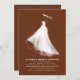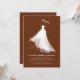 Diese Brautduscheinladungen sind eine wahre Verkörperung der Emotionen der Braut und der bezaubernden Anziehungskraft ihrer bevorstehenden Hochzeit. Das Design ist ein Meisterwerk von Eleganz und Minimalismus und zeigt die Silhouette der Braut in einem atemberaubenden weißen Hochzeitskleid. Diese visuelle Erzählung schafft ein romantisches und ätherisches Ambiente, das ein Gefühl nostalgischer Wunder weckt. Die Illustration wird mit künstlerisch rauen Pinselstrichen dargestellt, die in eine tiefe Terrakotta-Kulisse verschmelzen und so die visuelle Anziehungskraft des Designs weiter verstärken. Das Design vereint Einfachheit und Tiefe und spricht Bände von der Anmut der Braut und der Eleganz der Hochzeit, um zu gewährleisten, dass die Einladungen ein unauslöschliches Zeichen für die Herzen der Empfänger verlasse. Diese Einladung kündigt nicht nur eine Veranstaltung an, sondern erzählt auch eine Geschichte der Liebe, der Vorfreude und der Reise in ein neues Lebenskapitel, was es zu einem unvergesslichen Vorspiel für die Hochzeitsfeier macht.