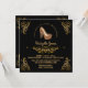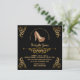 Elegante Einladungen zum Polterabend in Schwarz und Gold mit Touchs im Art-Déco-Stil - Elegante Imitat mit goldfarbenen Metallen schmücken die Ecken. Ein paar schicke, Imitate Gold Glitzer hohen Absätzen oben haben gekrümmte, goldene Buchstaben oben, die lautet: "Bitte schließen Sie uns für eine Bridal Luncheon Ehre" mit der Braut, um den Namen unten in der passenden goldenen, hübschen Drehbuch. Unter ihrem Namen befindet sich ein klassischer Art-Déco-Stil, ein goldmetallischer Scroll-Trenner. Bridal Mittagessen Details unterhalb der in goldfarbenen Buchstaben, einschließlich UAWG und speichern Registriernummer. Zurück hat schwarzen Hintergrund mit passenden goldenen Farbscrollen in den Ecken. In raffiniertem, schwarz und gold mit stilvollen Akzenten für sassy Diva Braut. Matches Great Gatsby oder glam Hollywood Thema Hochzeiten auch.