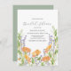 Celebrate with these elegant wildflower bridal invitations, featuring hand painted watercolor flowers in a delicate blend of orange and lavender, accented by lush green botanical leaves. Designed for a bridal shower, these artistic invitations capture the beauty of nature with a boho chic touch.