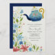 Polterabend-Einladung mit einer Grenze von mehrfarbigen Blume mit Grün aus einem niedlichen whimsical Teekessel. Passen Sie Ihre Informationen an, damit die Braut sein kann. Klicken Sie auf "Klick um weitere Anpassungen vorzunehmen", um den Stil, die Größe oder die Farbe des Schriftartes zu ändern.