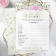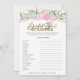 Entdecken Sie den Charme unserer Bridal Word Scramble Game Card, die mit Wildblumen, Federbänken, Rosen in Rosa und eleganter Kalligraphie entworfen wurde. Die Pinterest-inspirierte Karte eignet sich hervorragend für eine lustige Drehung bei traditionellen Brautparty- oder Bachelorettenspielen. Das Aquarellmotiv verleiht dem Ganzen eine Touch Lustigkeit.