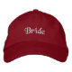 Bride Cap wird in Rot mit weißem besticktem Text angezeigt. Passen Sie dieses Objekt an oder kaufen Sie, wie es ist.