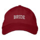 Bride Cap wird in Rot mit weißem besticktem Text angezeigt. Passen Sie dieses Objekt an oder kaufen Sie, wie es ist.