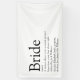 Personalisieren Sie mit der Definition der Braut, um ein einzigartiges Geschenk für Brautpartys, Bachelorette oder Hennen Party und Hochzeiten zu schaffen. Ein perfekter Weg, ihr zu zeigen, wie phantastisch sie an ihrem großen Tag ist und ein perfekter Sake für die Erholung ihres Lebens. Entwickelt von Thisisnotme©