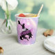 Humorvolle Disco Bachelorette Papiertasse für Teambride. In wunderschönen Farbverläufen von Lavendel über Periwinkle und Rosa mit einem funky Disco-Ball, einer bronkosbelebten Cowboy-Silhouette, einem glamourösen Retro-Schriftart "Bride 'em Cowboy' (das landesweite Äquivalent von 'a ring on it') und einer Diskothek beleuchtet Hintergrund. Suchen Sie ID928 um weitere Produkte in dieser trendigen Kollektion zu sehen.