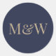 Bride Groom Gold Initials Navy Runder Aufkleber