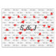 Monogram-Initalien in der Mitte in schwarzem Skript hochheizen. Bride und Groom Typografie geschrieben in schwarzem Skript, die horizontale Muster wiederholt. Schmetterte rote Herzen vor weißem Hintergrund. Hochzeitstypografie für den Empfang des Paares. Original Artwork Design von TamiraZDesign.