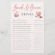 An elegant bridal shower "bride and groom trivia" game sheet with a Valentine bridal shower theme, featuring a watercolor painting of whimsical heart vines. Perfect for a Valentine bridal shower, celebrating love and romance.