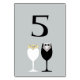 Diese Tischnummer hat zwei Gläser, die wie eine Braut und ein Bräutigam aussehen. Es ist ein lustiges Design mit einer großen Schriftart-Größe für die Zahl der Gäste, die leicht in der Bankettsaal zu sehen. Danach kann ein glücklicher Gast von jedem Tisch das Zuhause als schönes Souvenir nehmen. Lassen Sie es von dem glücklichen Paar autografieren oder vielleicht von Ihren anderen Tischgästen unterschrieben, um den Anlass zu gedenken.