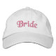 Maßgeschneiderte Bride bestickte Baseballkappe / Hut von Heard_. Das Bild ist weiß mit rosa Buchstaben.