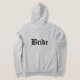 Die weiche Reißverschlusshose für die Braut zum Entspannen in der Bella ist in Heather grau dargestellt und hat schwarzen Bridtext vorne und hinten. Passen Sie dieses Objekt an oder kaufen Sie, wie es ist.