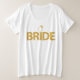 Shine bright in unserem Bride Imitats Gold Sequins Plus-Size-T - Shirt! Dieses stilvolle Tee wurde für Komfort und Glanz konzipiert und bietet glänzende Imitate, die als Sequenzer für den Hochzeitsspass dienen. Ein fantastischer Platz, um die Braut in einem überzeugenden, glamourösen Stil zu feiern!
