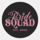 Diseño con Frase "Bride Squad", sencilla y elegante, cita para Pines con tipografía moderna brillante de color rosa en un estilo moderno. El nombre se puede personalizar fácilmente con el Nombre de la Novia, Un recuerdo muy lindo para un momento muy especial para cada mujer. No lo piense y adquiera las suya ahora.