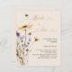 Ein beige Hintergrund. Mit Bienen dekoriert und Wildblumen in Violett und Rosa gestrichen. Personalisieren und fügen Sie einen Namen und Party-Details hinzu. Geschlechterneutral. Text: Bride to bee. 1 Blatt = 1 Einladung mit Druckkante bis Kante.