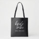 Einfache, moderne und stilvolle "Bride Tribe" Zitat-Tasche mit Schriftart in Schwarz und Weiß in einem trendigen Stil. Die Namen können mit den Namen Ihres Brautparty personalisiert werden. Man kann es für Braut, Brautmädchen, Blume oder die Mutter der Braut verwenden. Die koordinierenden Accessoires für Teambride funktionieren gut für ein Brautparty Vorschläge, das Brautparty, Junggeselinnen-Abschied, die Probe Abendessen, den Hochzeitsvormittag oder den Tag nach dem Hochzeitsbrunch. Macht dem Brautparty ein durchdachte personalisiertes Geschenk.